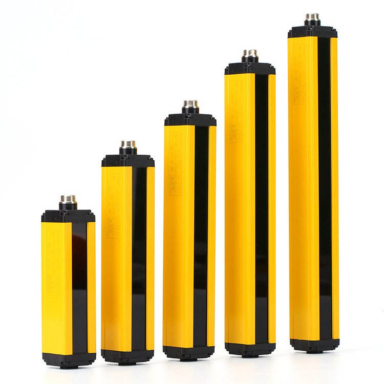 安全光柵的工作原理是:通過發射器發出紅外線,由接收器接收,形成保護光幕,當光幕被遮擋,保護裝置會發出相應的信號,控制潛在危險設備的停止或者報警,避免安全事故的發生。